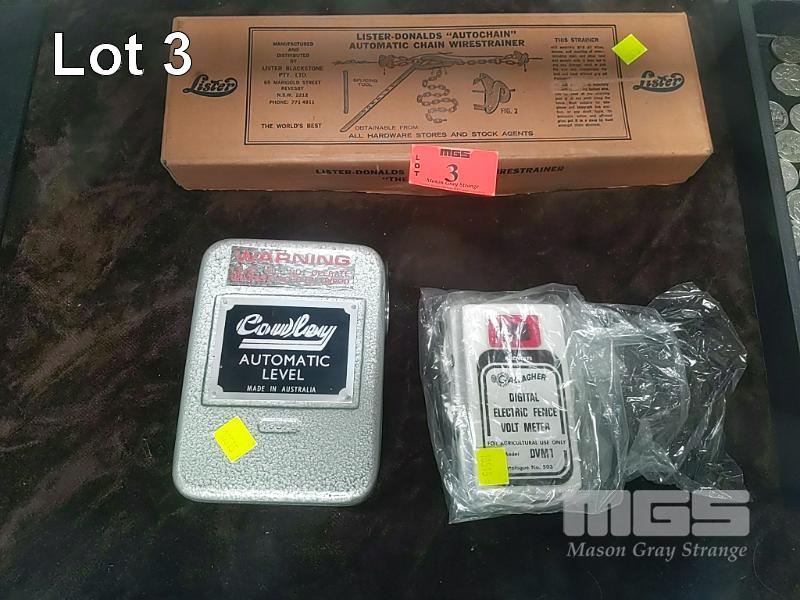LISTER-DONALDS, AUTOCHAIN, COWBOY AUTOMATIC LEVELLER & DIGITAL ELECTRIC FENCE METER