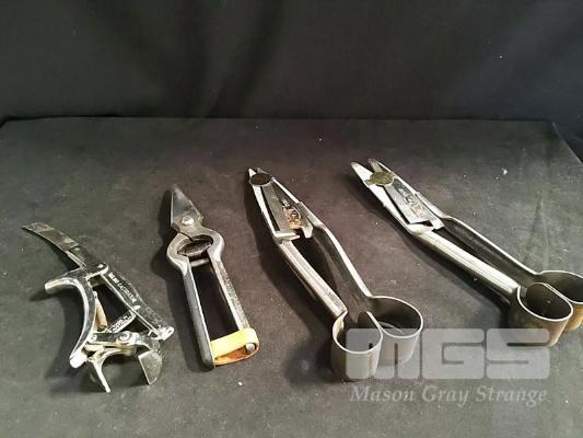 2 x "COMBINATION UTS SHEFFIELD" No.1 STAINLESS STEEL HAND SHEARS. WILMCO CASTRATORS AND "TRUE FRIEND" STAINLESS STEEL HOOF CLIPPERS.