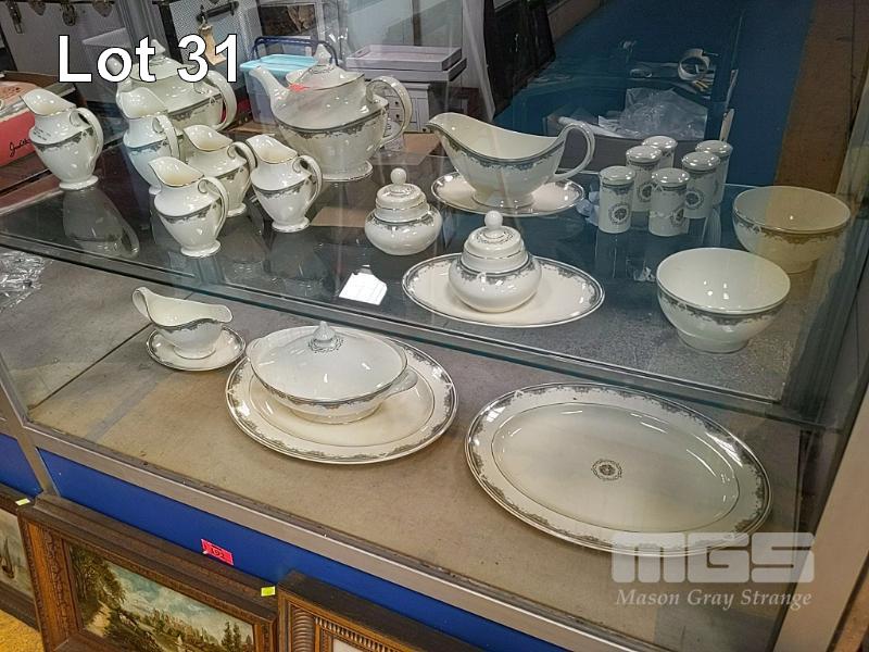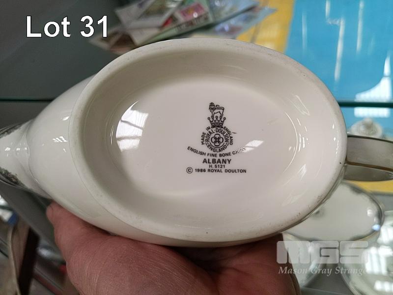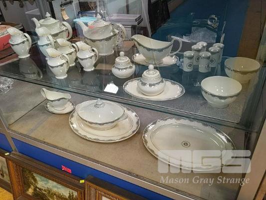 COLLECTION OF ROYAL DOULTON 'ALBANY' DINNERWARE (2 X SHELVES)