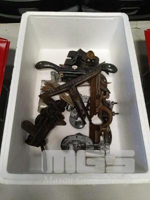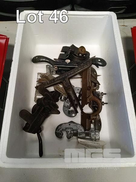 WOOD PLANE PARTS, SPOKE, SHOV?? & PIPE CUTTERS