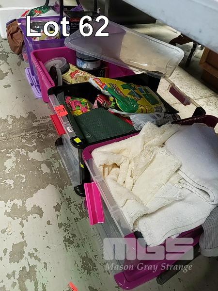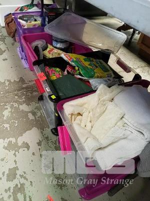 MATERIAL, CLOTHING, BIN LINERS, OFFICE STATIONERY, ETC, 5 x TUBS