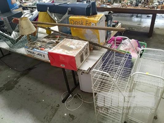 DESK FAN, HEATER, TABLE MATE, TABLE LAMPS, LAUNDRY BASKET, ETC.