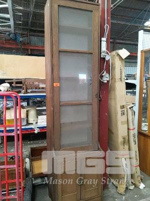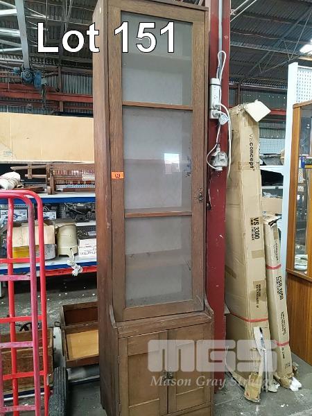 NARROW TIMBER DISPLAY CABINET WITH UNDER STORAGE