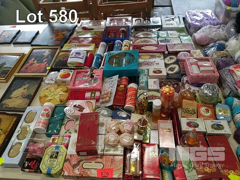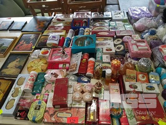 LARGE COLLECTION OF BATHROOM SOAPS, FRAGRANCES AND POWDERS. MOST OF THE STOCK IS VINTAGE.