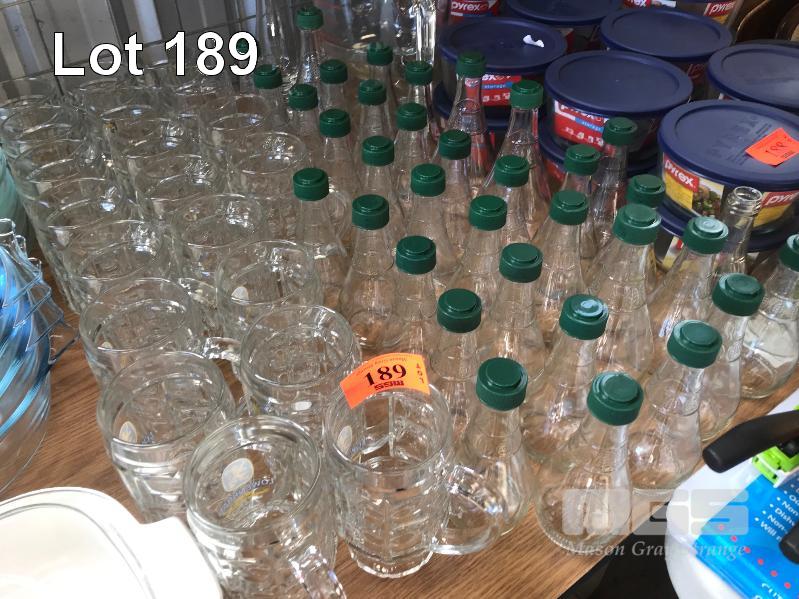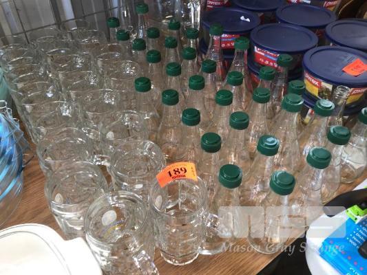VINEGAR BOTTLES & GLASS BEER STEINS