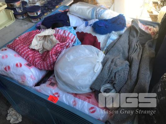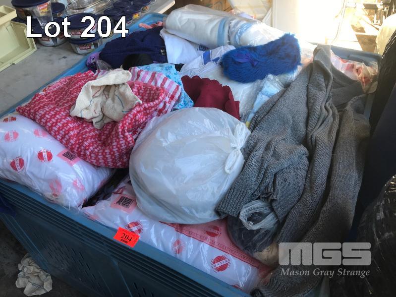 ASSORTED CLOTHING, BEDDING, PILLOWS, ETC. (NOT STILLAGE
