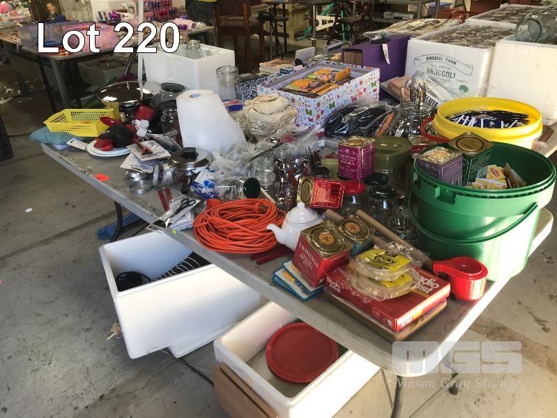 ASSORTED KITCHENWARE, CUTLERY, JARS, TEA BAGS, ETC. (1 x TABLE)