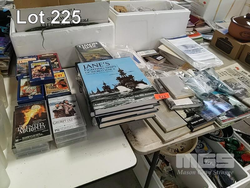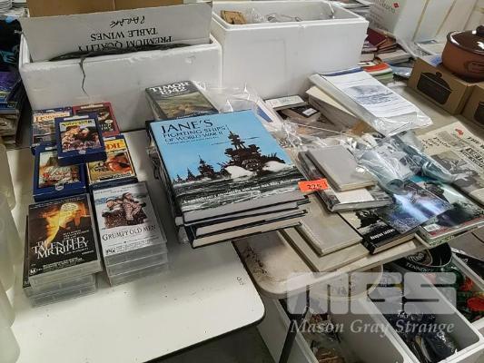 MILITARY RELATED BOOKS, STICKERS, ETC. & ASSORTED VHS TAPES