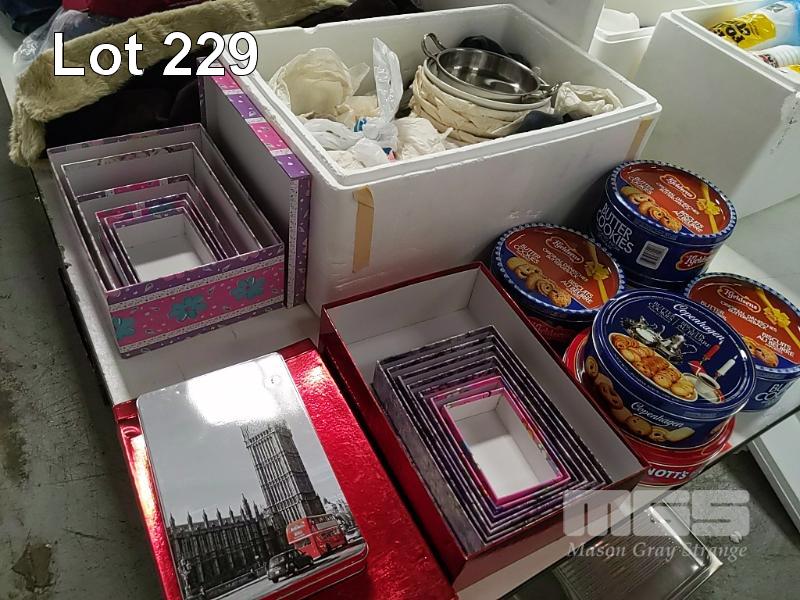 GIFT BOXES, BISCUIT TINS, GLASSWARE, ETC.