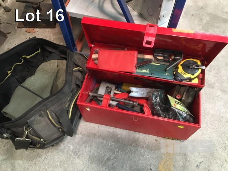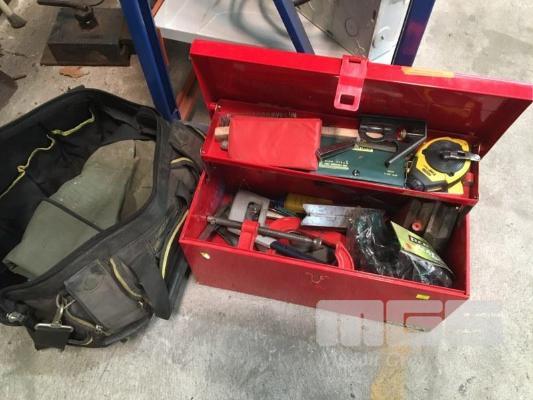 BOILERMAKERS TOOL KIT, BTK096 STANLEY TOOL BOX & CONTENTS INC DIVIDERS, MEASURES, G-CLAMPS, CHIPPING HAMMER, FILES, TIN SNIPS, MAGNETIC SQUARES, ALLEN KEYS, WIRE BRUSH, CHALK LINE, ETC