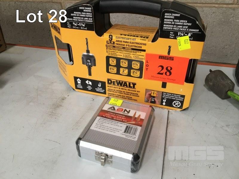 DEWALT HOLE SAW SET, 9 PIECE & 1 STEP DRILL SET IN CARRY CASE