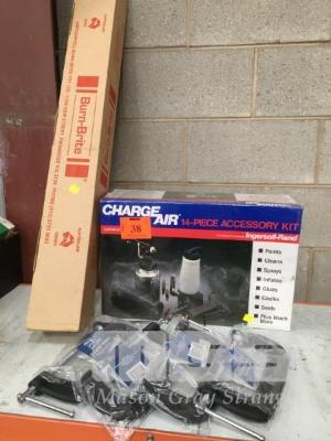 CHARGE AIR 14 PIECE, SPRAY PAINT/COMPRESSOR ATTACHMENT KIT & 4 x G-CLAMPS & BURN BRITE WORK LIGHTS