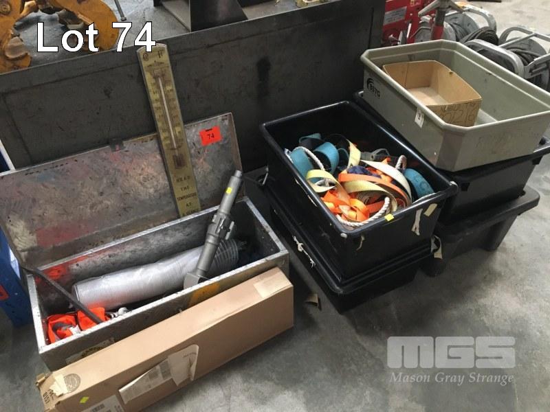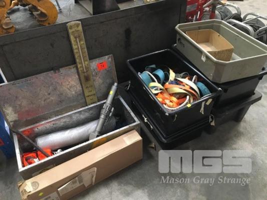TRAILER JOCKEY WHEEL, ALLOY TOOL BOX, 750 X 310 x 270mm, RATCHET STRAPS & PLASTIC TUBS