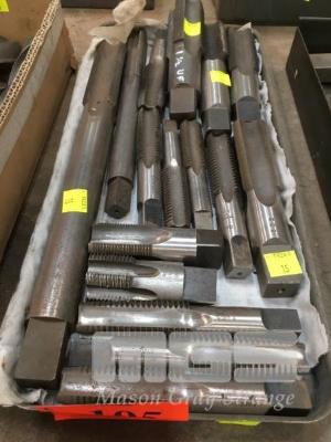 16 x THREAD TAPS, ASSORTED SIZES UP TO 1 1/2 UF, 1 x TRAY