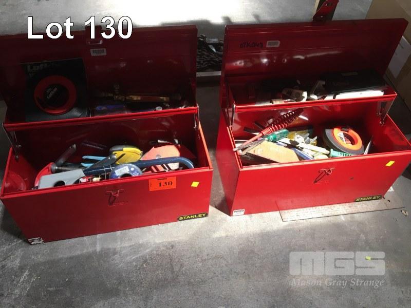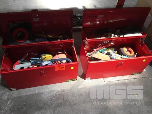 2 x TOOL BOXES & ASSORTED HAND TOOLS, INC OXY TORCH, G-CLAMPS, ALLEN KEYS, PRY BARS, FILES, ETC