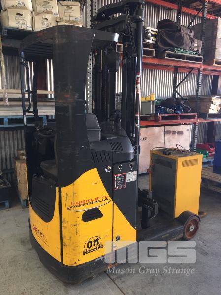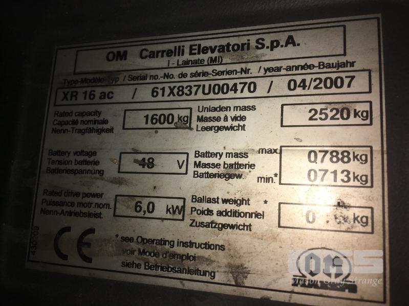 2007 OM CARRELLI ELEVATORI S.P.A ELEC REACH TRUCK MOD: OM PRIMSPO CLASSIC TYPE: XR16AC S/NO: 61X837U00470 3 STAGE MAST, DRIVE POWER RATING: 6kw HOURS: 3,183 SHOWING LIFT CAP: 1,600kg WITH BATTERY CHARGER