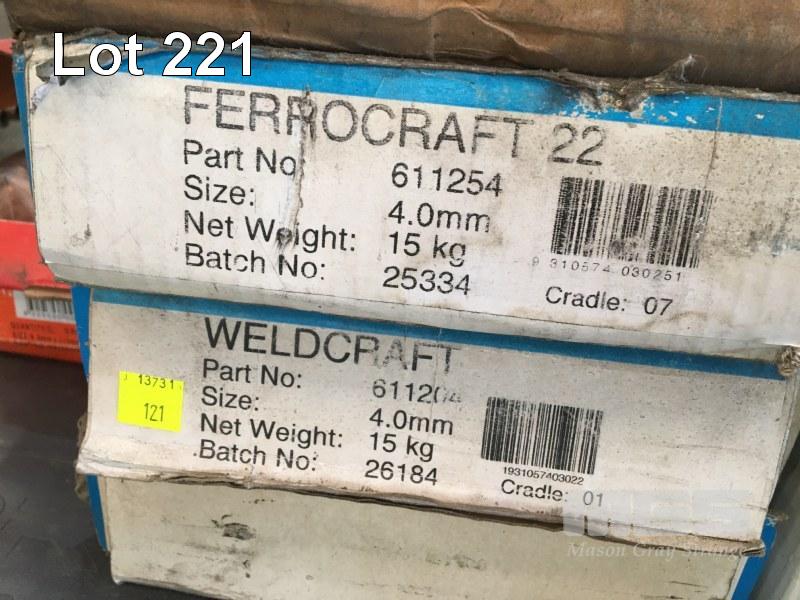 LARGE QUANTITY ARC WELDING ELECTRODES INC CIGWELD-FERROCRAFT 22, 4.0mm, WELDCRAFT, 4.0mm, PRO WELD HF700 & 4113, 4.0mm TIG WIRE INC CIGWELD COMWELD, LINCOLN TIG 31C, ETC 1/2 PALLET