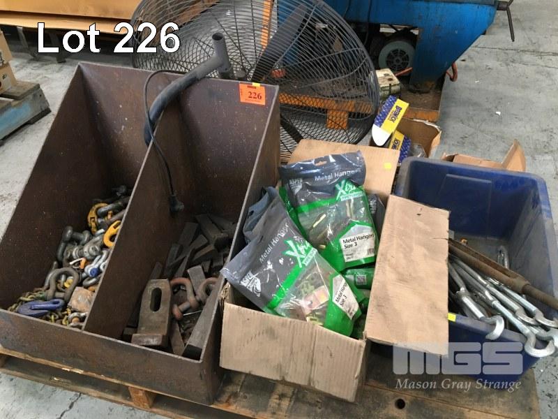 WORKSHOP FAN, 700mm< 240V, D & BOW SHACKLES, TURNBUCKLES WEDGES & HEAVY DUTY STEEL BIN