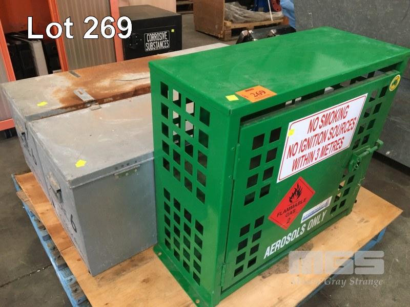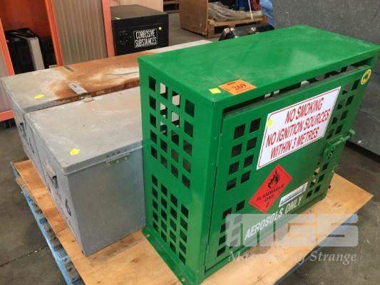 FLAMMABLE GAS STORAGE CABINET, 710 x 310 x 650mm (H), GREEN STEEL & 2 x GALV STEEL TOOL BOXES