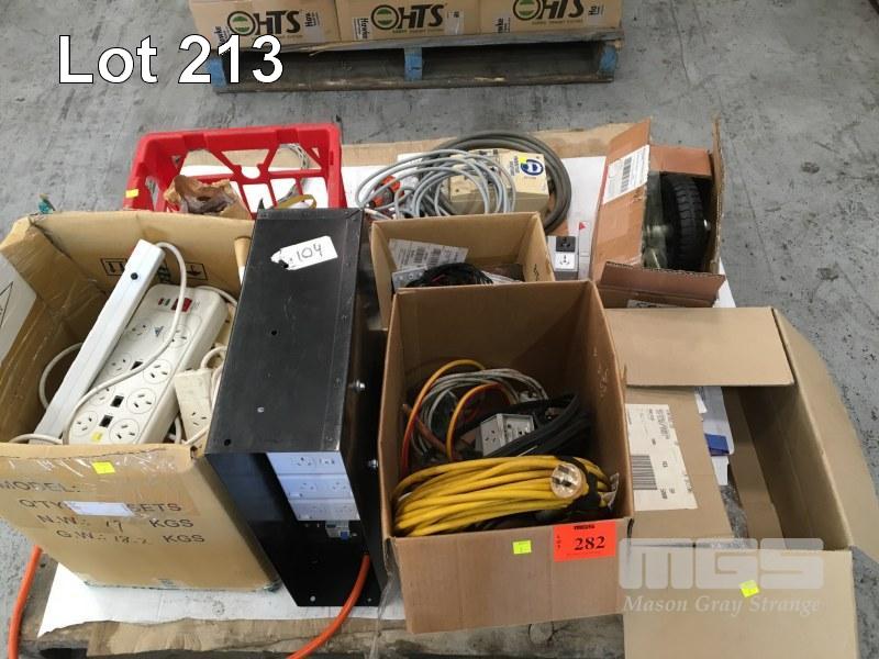 ELECTRIC EXTENSION CORDS, POWER DISTRIBUTION BOARDS & BOXES, ELECTRICAL FITTINGS, HARDWARE & CASTOR WHEELS, 1 x PALLET