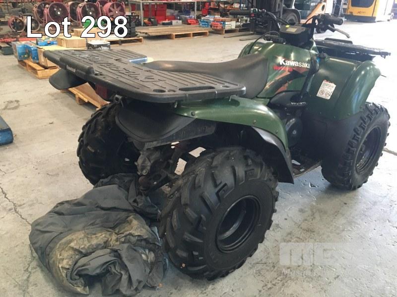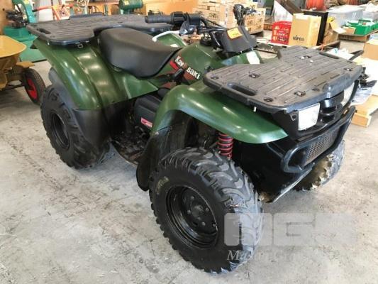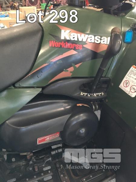 QUAD BIKE, KAWASAKI WORK HORSE AUTOMATIC 400 4 STROKE ENGINE ODO: 23,011kms SHOWING TOW BAR, FRONT & REAR CARRY RACKS & COVER (TURNING OVER BUT NOT STARTING)