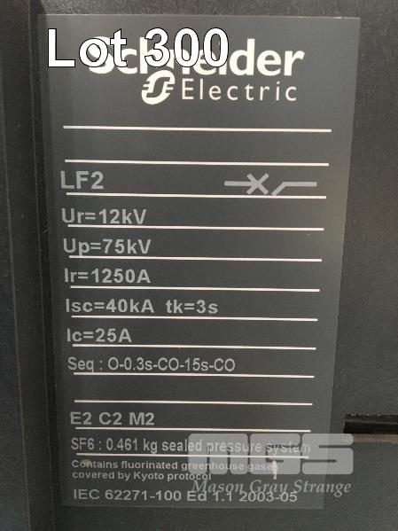 VACUUM CIRCUIT BREAKER, SCHNEIDER ELECTRIC TYPE: LF2, E2-C2-M2 IR: 1250AMP UP: 75KV SPEC: IEC62271-100ED1.1 DOM: 2003 S/NO: SE-2011-W28-3-0231 NEW IN CRATE