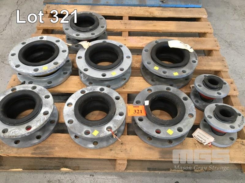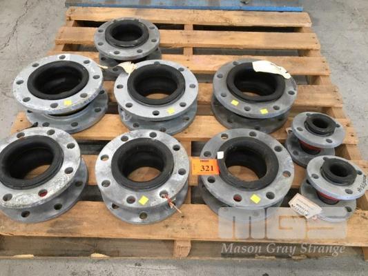 9 x EXPANSION JOINTS, FLANGE MOUNT, GALV STEEL, ASSORTED SIZES UP TO 6"