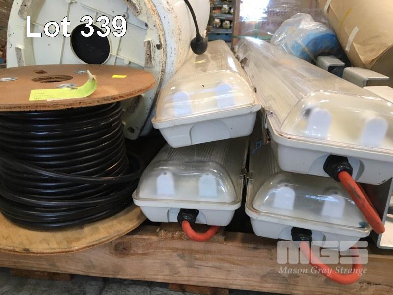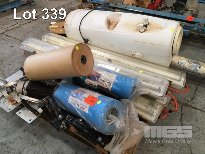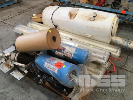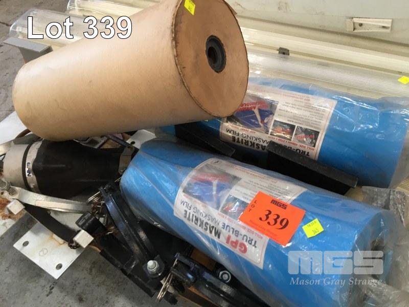 MASKRITE MASKING FILM, 2 x ROLLS, FIRE EXTINGUISHER MOUNTING BRACKETS/HOLDERS, 4 x WEATHERPROOF FLURO LIGHT FIXTURES, WATER FOUNTAIN, 1 x ROLL WHITE VINYL TARP, 1 x PALLET