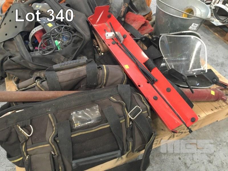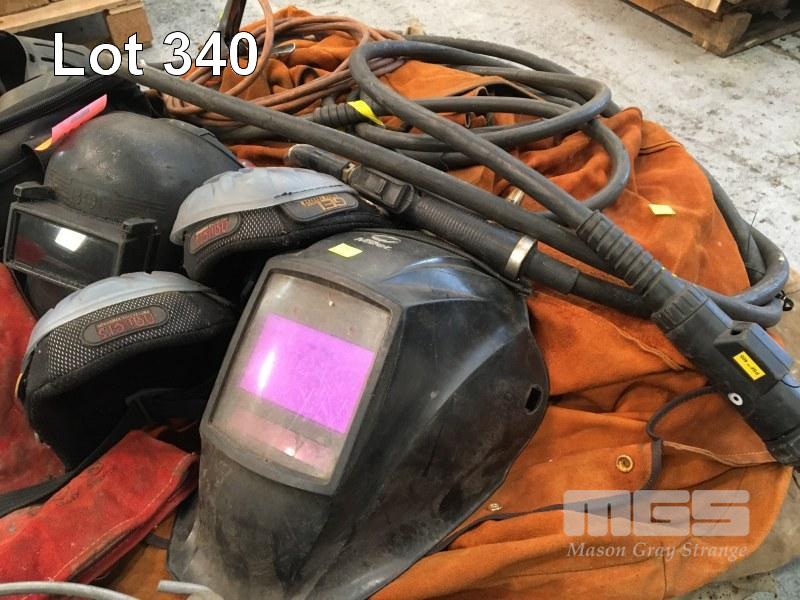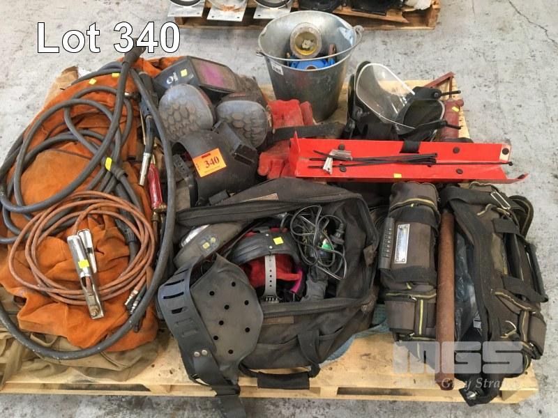WELDING BLANKETS, HELMETS, OXY CUTTING TORCH, MIG GUN, TOOL BAGS, DRUM PUMP, PROTECTIVE GEAR, ETC, 1 x PALLET