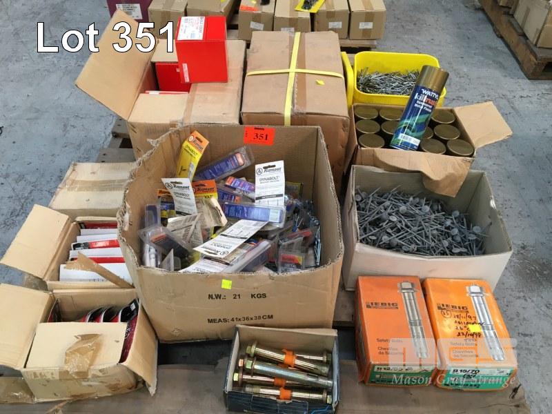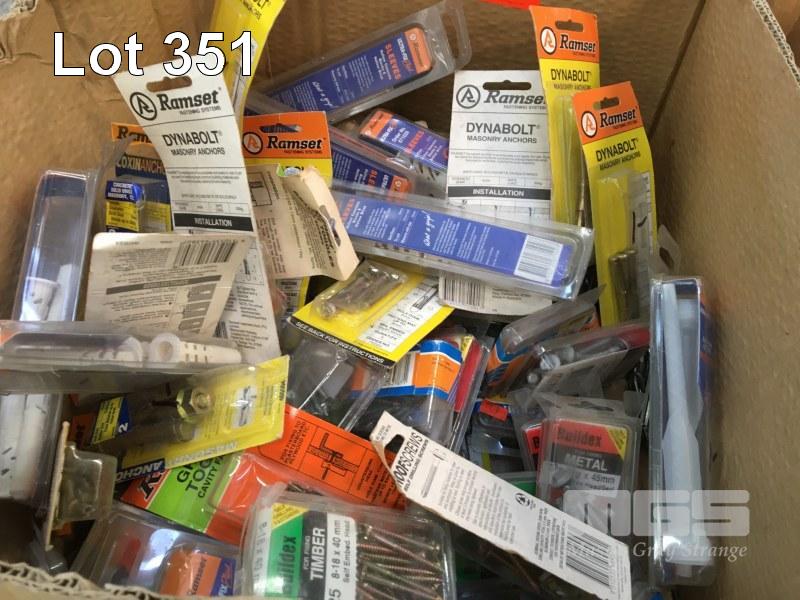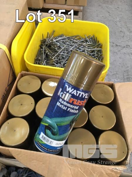 ASSORTED DYNA BOLTS, TEK SCREWS, HINGES, NAILS, PLASTIC WALL PLUGS & KILL RUST SPRAY PAINT