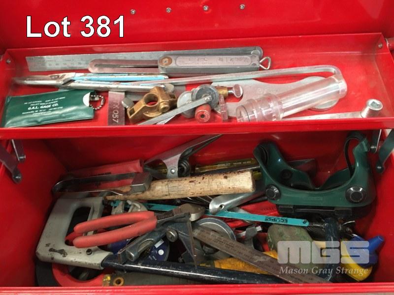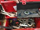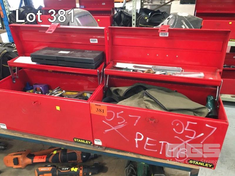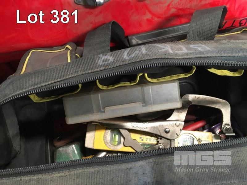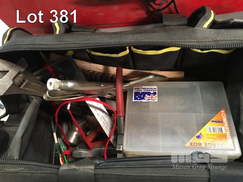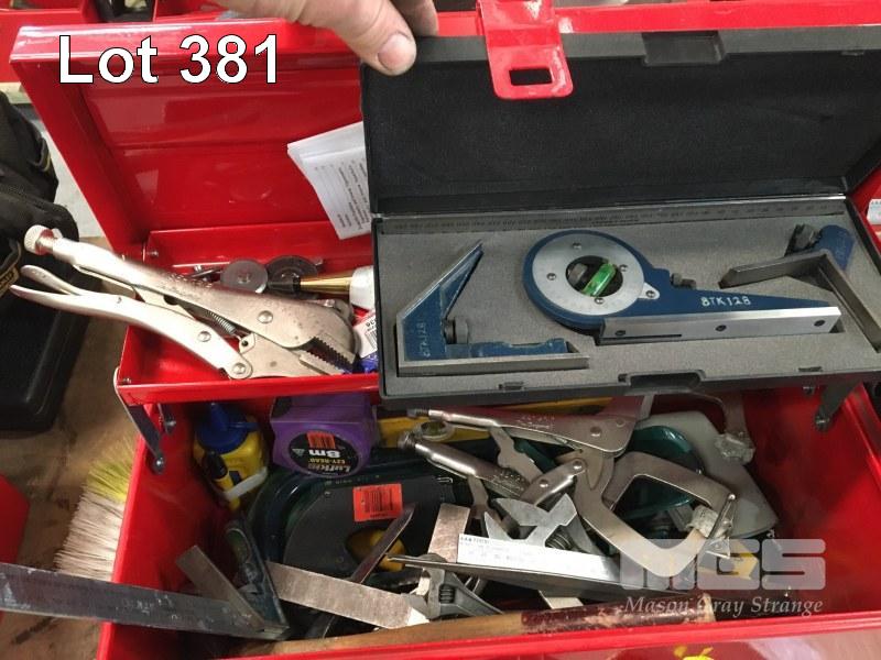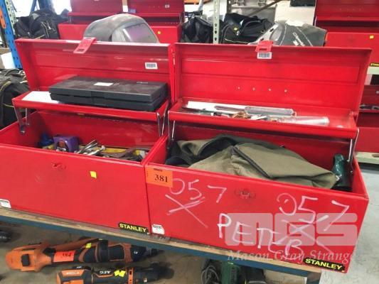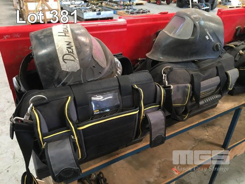 2 x TOOL BOXES & 2 x TOOL BAGS WITH ASSORTED HAND TOOLS, M&R PRECISION COMBINATION SET, DRIVER SET, WELDING HELMET, HAND TOOLS, ETC