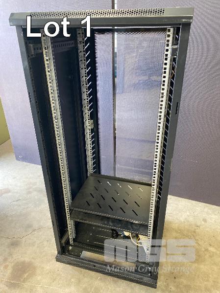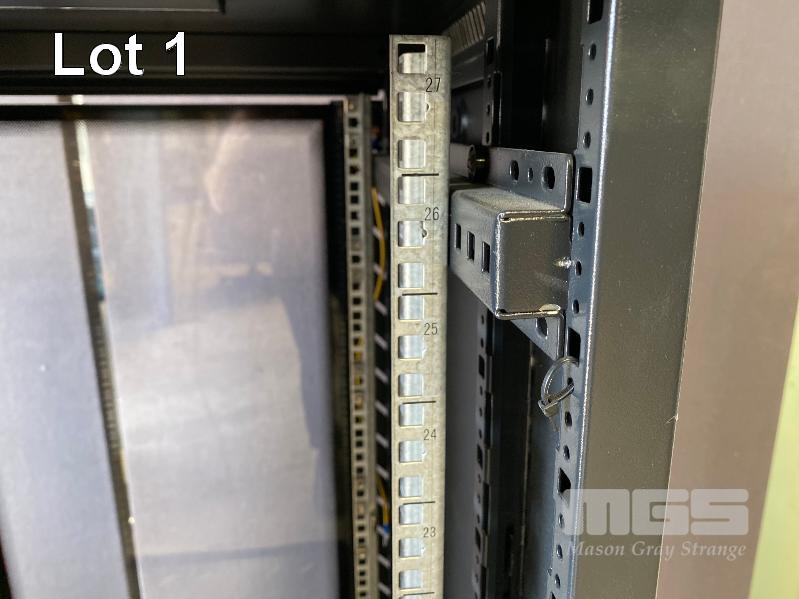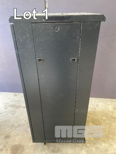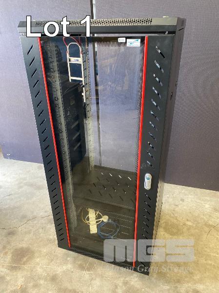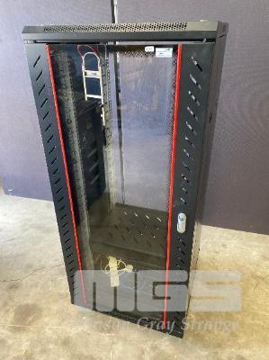 DATA RACK CABINET, 27U, 140 x 60 x 60cm, GLASS FRONT PANEL (LOCKED NO KEYS), MOBILE ON WHEELS (NO REAR PANEL)