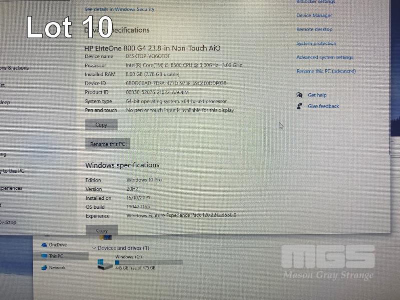 ALL-IN-ONE PC, HP ELITEONE 800 G4, CORE i5 8500 (8TH GEN) @ 3GHz, 8GB DDR4 RAM, 512GB SSD, INBUILT 23.8" FHD IPS WIDESCREEN (1920x1080), INTEL UHD VIDEO, WEBCAM, 6 x USB, 1 x USB-C, WINDOWS 10 PRO INSTALLED, KEYBOARD & MOUSE S/N:AUD9250F6N
