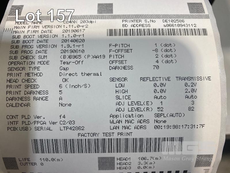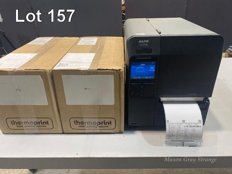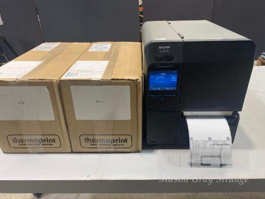 SATO CL4NX INDUSTRIAL THERMAL LABEL BARCODE PRINTER, 203dpi, USB, NETWORK, WWCL00060 (TEST PRINT ATTACHED) WITH 2 x BOXES LABEL ROLLS (LABEL SIZE 102mm x 150mm) S/N:DE102586