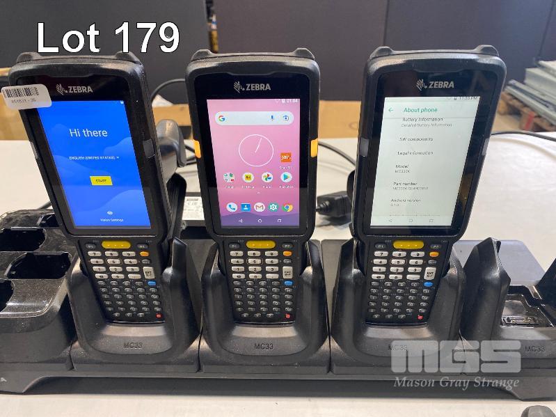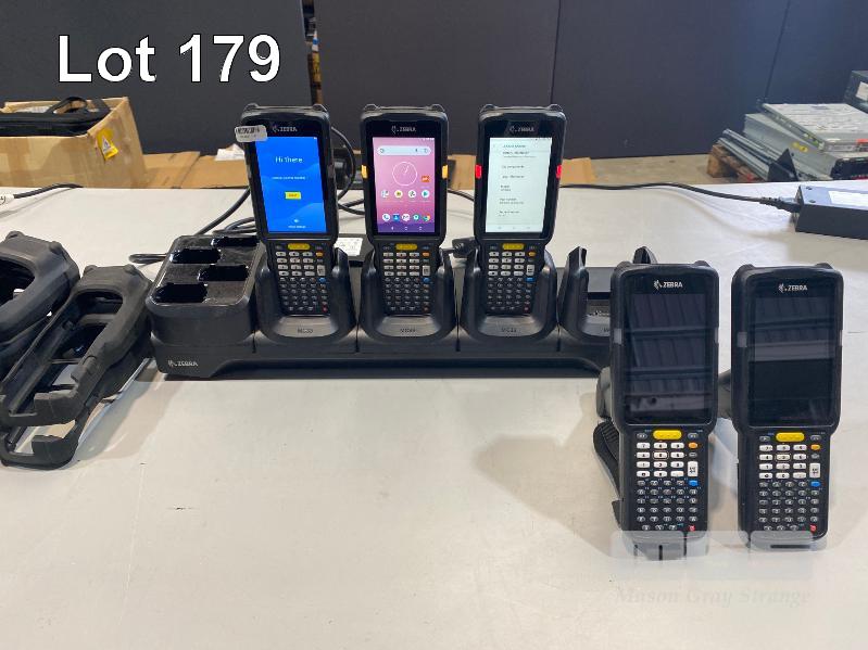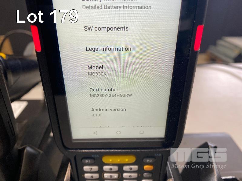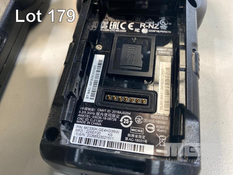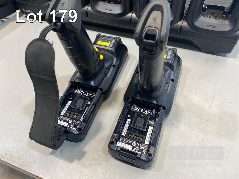 5 x ZEBRA MC330K PREMIUM HANDHELD MOBILE COMPUTERS WITH GUN TRIGGER, ANDROID OS, 2D IMAGER, Wi-Fi, BLUETOOTH, MODEL MC330K-GE4HG3RW (DOM 9/2020) WITH PROTECTIVE RUBBER & ZEBRA CHARGING CRADLE, MODEL CRD-MC33-4SC4BC-01 WITH POWER SUPPLY (NOTE: 2 x NO BATTERIES, 2 x CHARGING/BATTERY ISSUES) S/N:S20268523021659, S20265523022716, S20266523021553, S20266523021759, S20266523021511