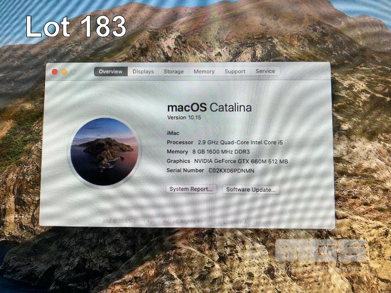 APPLE iMAC (A1419), CORE i5 3470S (3RD GEN) @ 2.9GHz, 8GB DDR3 RAM, 1TB SATA HDD, BUILT-IN 27" DISPLAY (2560x1440), 512MB NVIDIA GEFORCE GTX 660M VIDEO, Wi-Fi, MAC OS 10.15 INSTALLED (NO KEYBOARD, NO MOUSE) S/N:C02KX06PDNMN