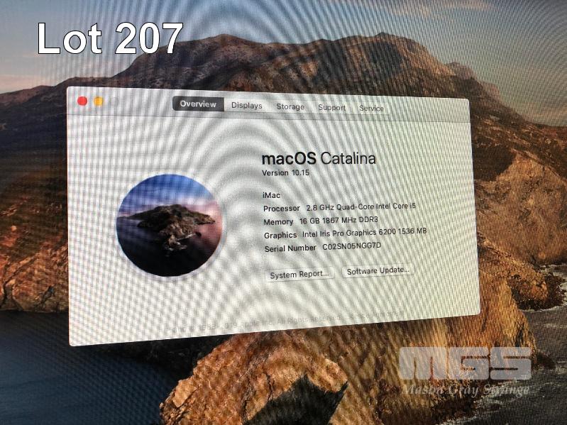 APPLE iMAC (A1418), CORE i5 5575R (5TH GEN) @ 2.8GHz, 16GB DDR3 RAM, 256GB SSD, BUILT-IN 21.5" DISPLAY (1920x1080), INTEL IRIS PRO GRAPHICS 6200, Wi-Fi, MAC OS 10.15 INSTALLED (NO KEYBOARD, NO MOUSE) S/N:C02SN05NGG7D