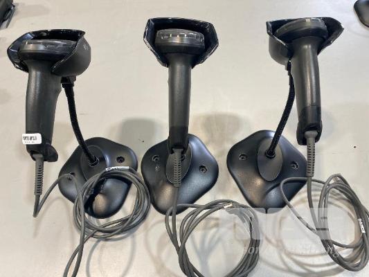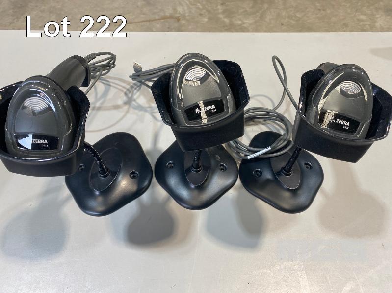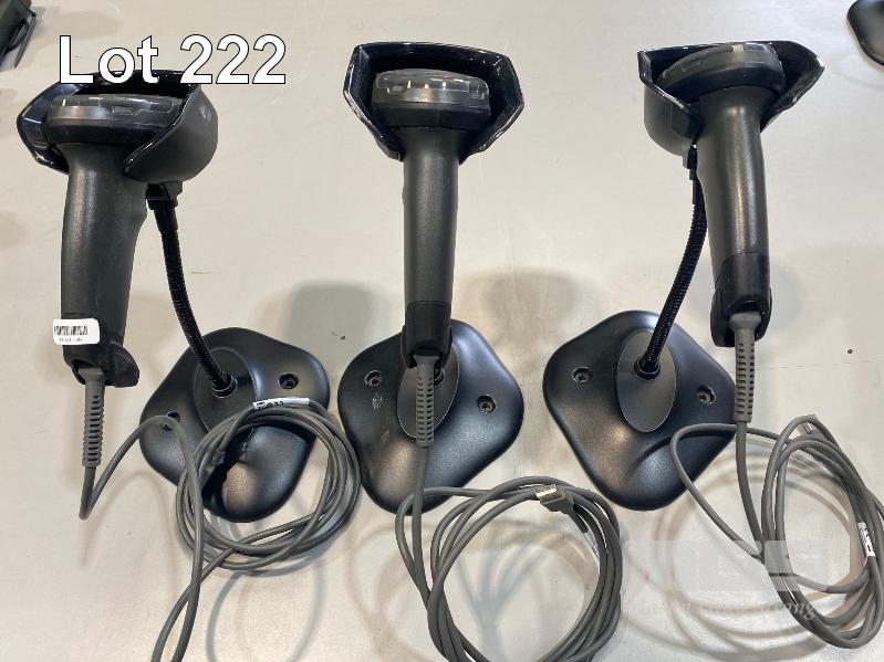 3 x ZEBRA DS2208 HANDHELD 2D BARCODE SCANNERS, USB WITH STANDS