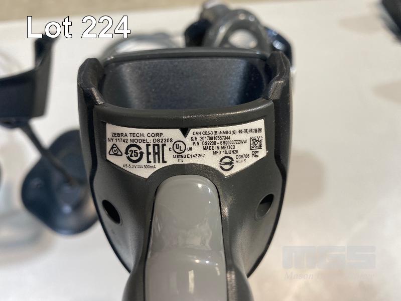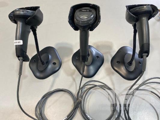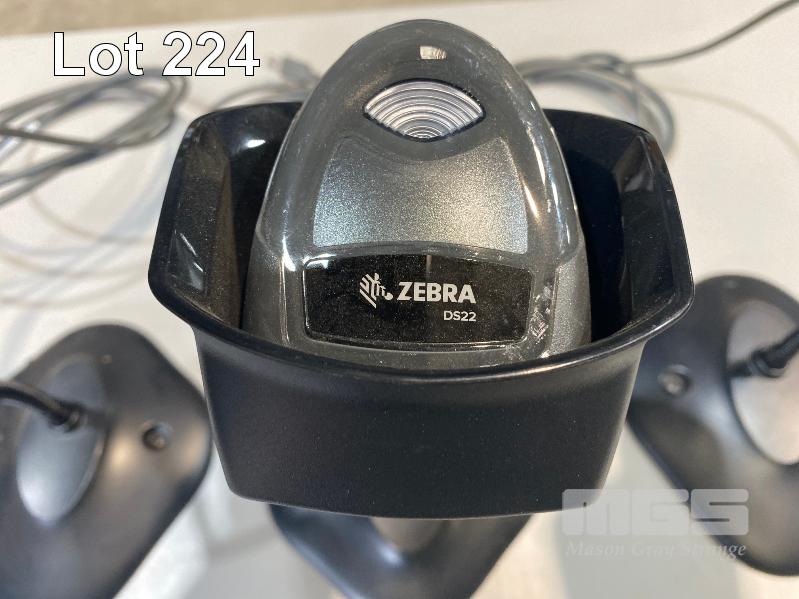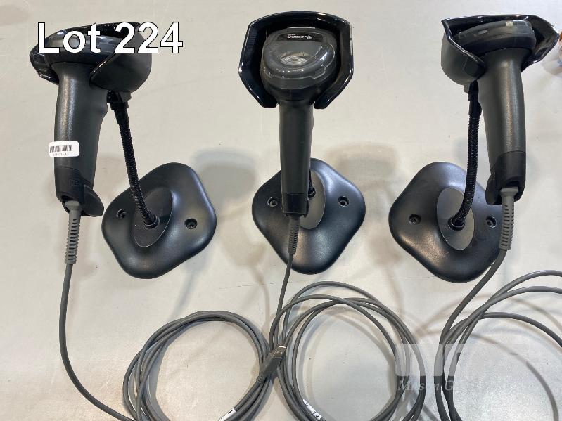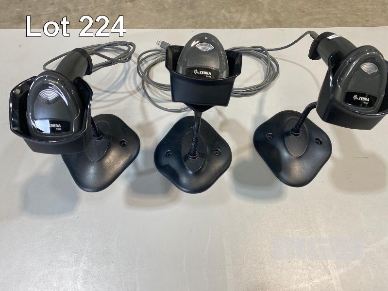 3 x ZEBRA DS2208 HANDHELD 2D BARCODE SCANNERS, USB WITH STANDS