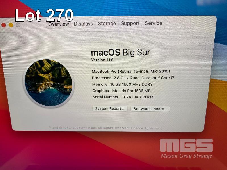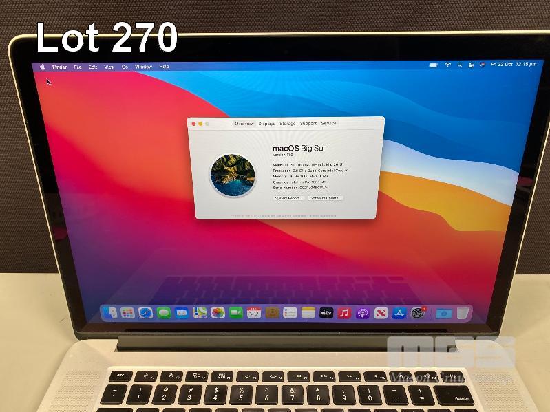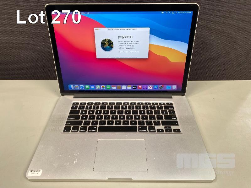 LAPTOP, APPLE MACBOOK PRO (A1398), CORE i7 4980HQ (4TH GEN) @ 2.8GHz, 16GB DDR3 RAM, 1TB SSD, 15.4" RETINA WIDESCREEN (2880x1800), INTEL IRIS PRO GRAPHICS, Wi-Fi, MAC OS 11.6 INSTALLED (NO POWER SUPPLY) (NOTE: MINOR MARKS ON SCREEN, FAULTY KEYBOARD - SOME KEYS NOT WORKING) S/N:C02RJ04BG8WM