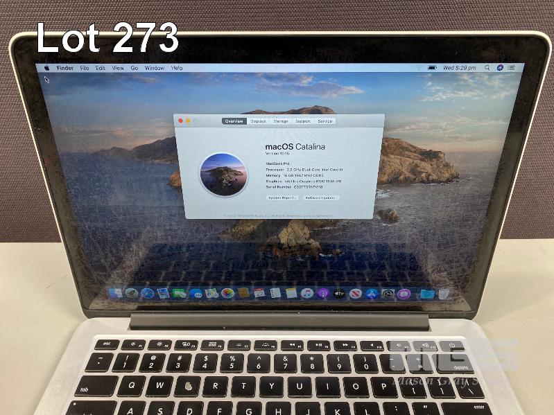 LAPTOP, APPLE MACBOOK PRO (A1502), CORE i5 5287U (5TH GEN) @ 2.9GHz, 16GB DDR3 RAM, 1TB SSD, 13.3" RETINA WIDESCREEN (2560x1600), INTEL IRIS GRAPHICS, Wi-Fi, MAC OS 10.15 INSTALLED (NO POWER SUPPLY) (NOTE: MAJOR MARKS ON SCREEN) S/N:C02PT3RHFVH8