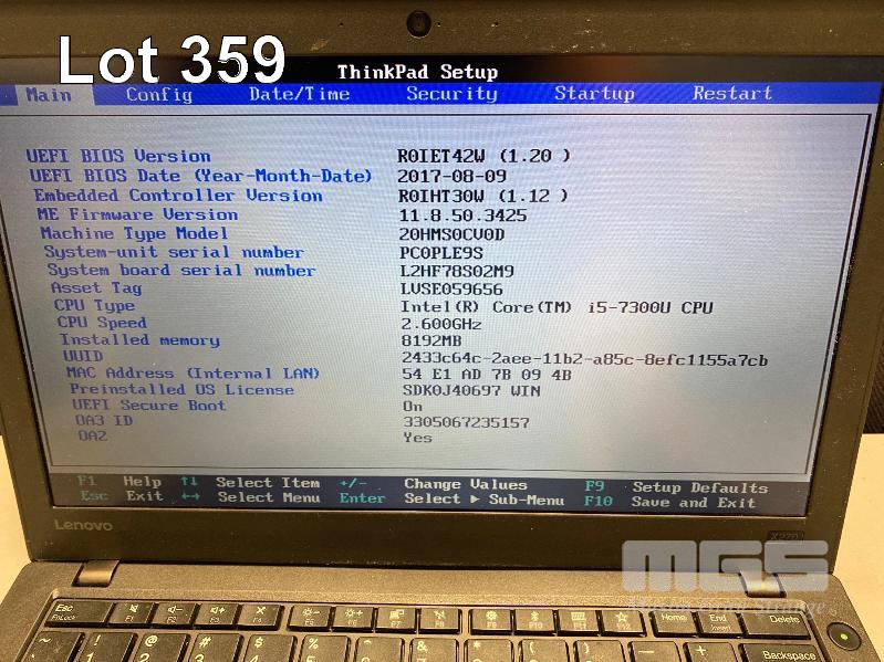 LAPTOP, LENOVO THINKPAD X270 (20HMS0CV0D), CORE i5 7300U (7TH GEN) @ 2.6GHz, 8GB DDR4 RAM, 256GB NVMe SSD, 12.5" WIDESCREEN (1366x768), INTEL HD VIDEO, Wi-Fi, BLUETOOTH, WINDOWS 10 PRO INSTALLED & POWER SUPPLY S/N:PC0PLE9S