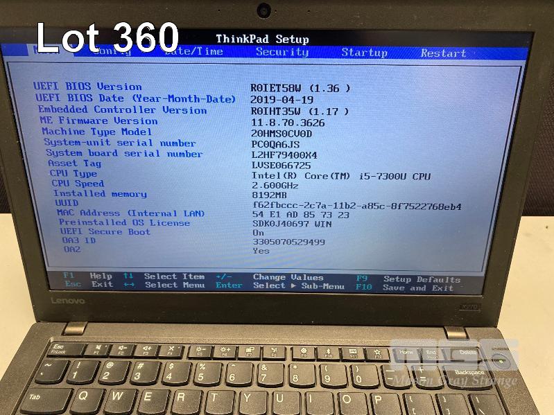 LAPTOP, LENOVO THINKPAD X270 (20HMS0CV0D), CORE i5 7300U (7TH GEN) @ 2.6GHz, 8GB DDR4 RAM, 256GB NVMe SSD, 12.5" WIDESCREEN (1366x768), INTEL HD VIDEO, Wi-Fi, BLUETOOTH, WINDOWS 10 PRO INSTALLED & POWER SUPPLY S/N:PC0QA6JS