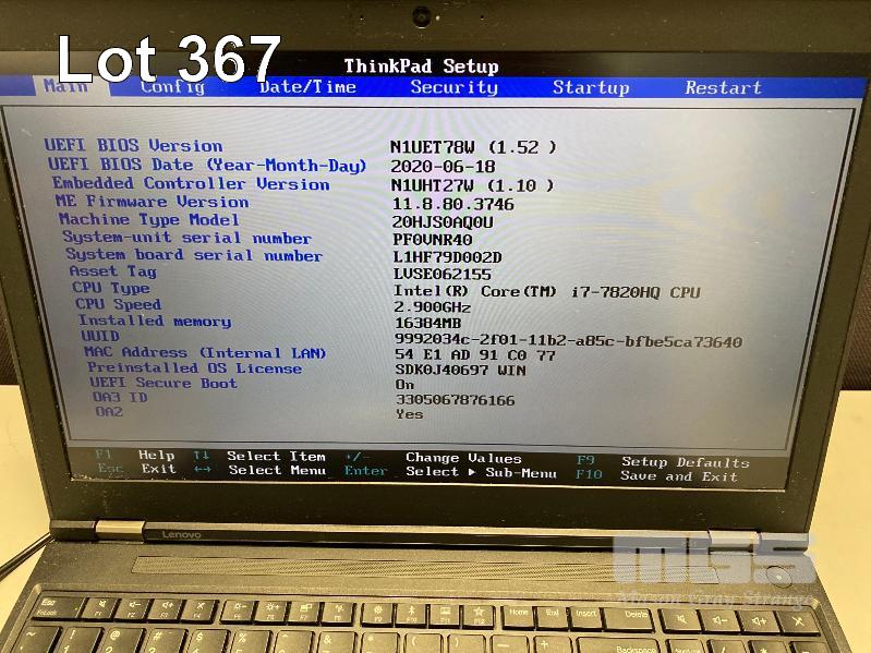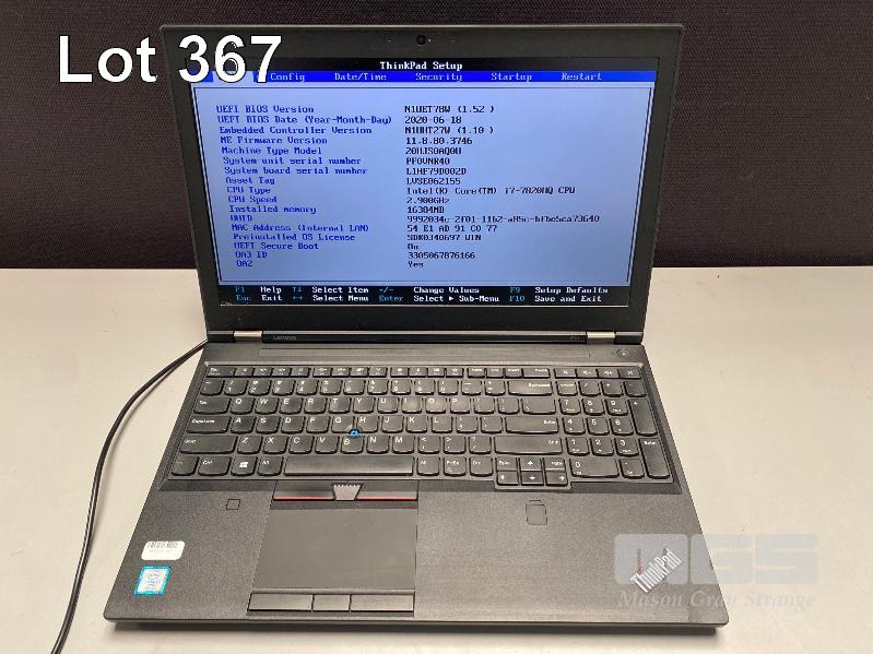 LAPTOP, LENOVO THINKPAD P51 MOBILE WORKSTATION (20HJS0AQ0U), CORE i7 7820HQ (7TH GEN) @ 2.9GHz, 16GB DDR4 RAM, NO HDD, NO CADDY, 15.6" WIDESCREEN (1920x1080) & POWER SUPPLY (NOTE: CRACK LINE ON CASING RHS, KEYBOARD ISSUES - SOME KEYS NOT WORKING, BATTERY NOT CHARGING) S/N:PF0VNR40
