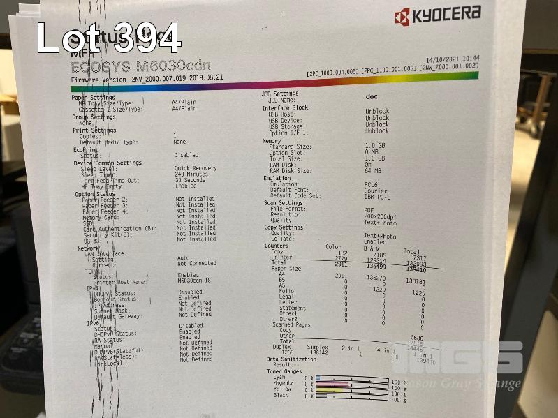 PRINTER, KYOCERA ECOSYS M6030cdn COLOUR LASER MFC, USB, NETWORK, 2,911 COLOUR & 136,499 B&W PAGES (TEST PAGE ATTACHED - POOR QUALITY)
