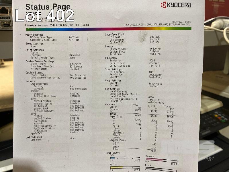 PRINTER, KYOCERA ECOSYS FS-C2126MFP+ COLOUR LASER MFC, USB, NETWORK, 23,620 COLOUR & 14,788 B&W PAGES (TEST PAGE ATTACHED)