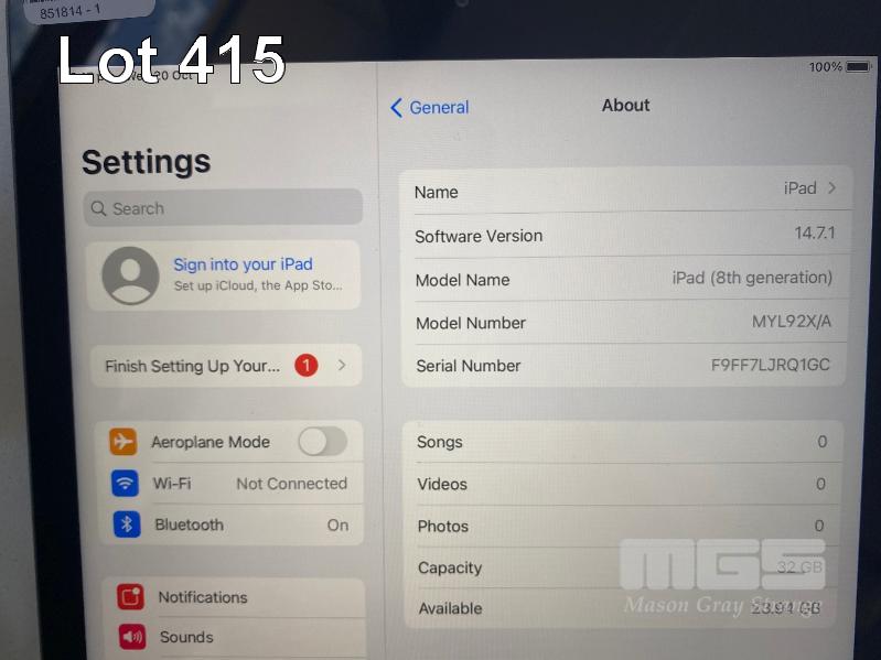 APPLE iPAD (8TH GENERATION), 32GB, Wi-Fi, SPACE GREY, MODEL A2270 WITH USB-C TO LIGHTNING CABLE & USB-C CHARGER S/N:F9FF7LJRQ1GC