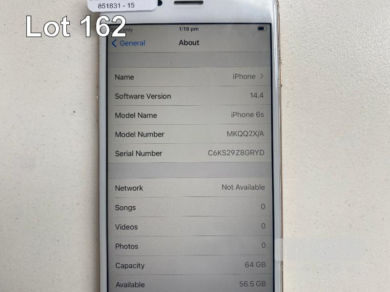 APPLE iPHONE 6s, 64GB, GOLD, MODEL A1688 (NO CHARGER, NO CABLE) S/N:C6KS29Z8GRYD