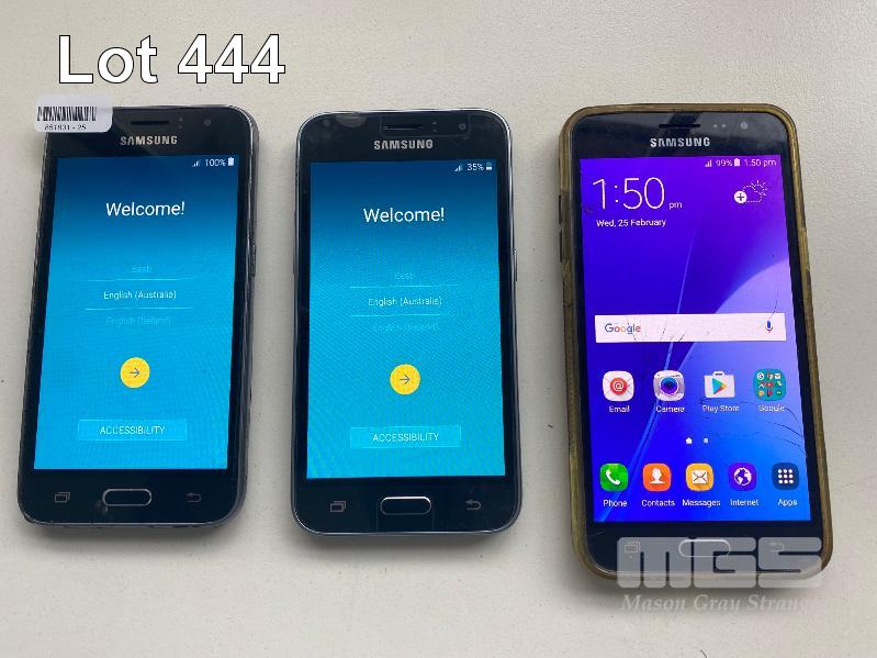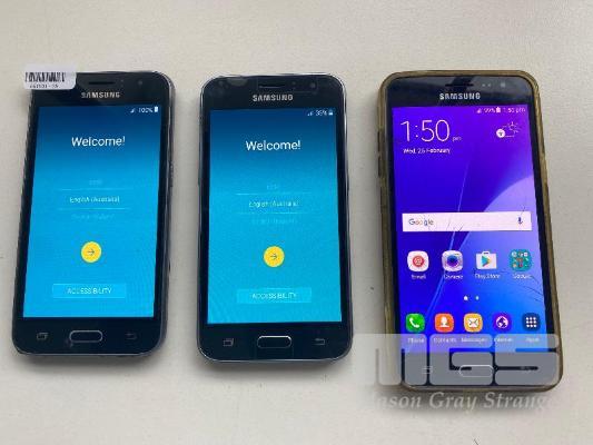 4 x SAMSUNG GALAXY J1 (2016) SMARTPHONES, 1 x SAMSUNG GALAXY J3 (2016) SMARTPHONE (NOTE: DAMAGED) (NO CHARGERS, NO CABLES)