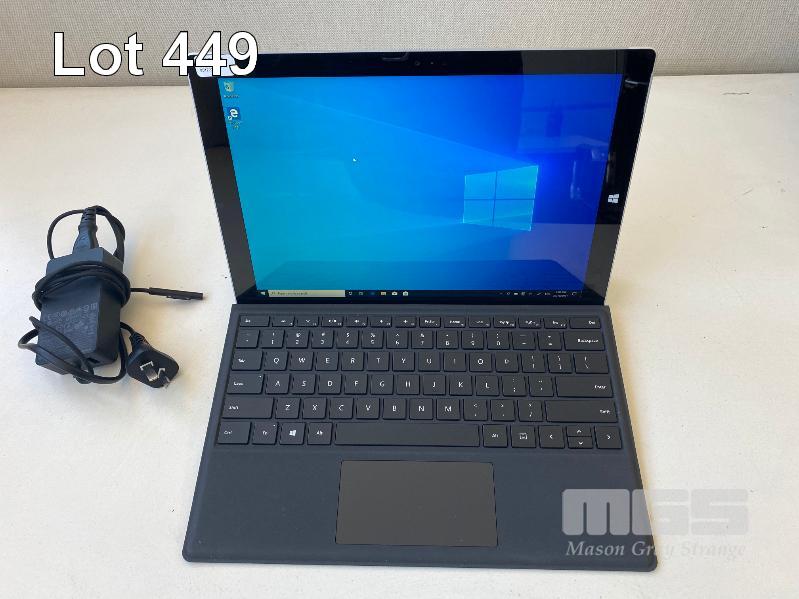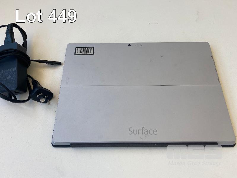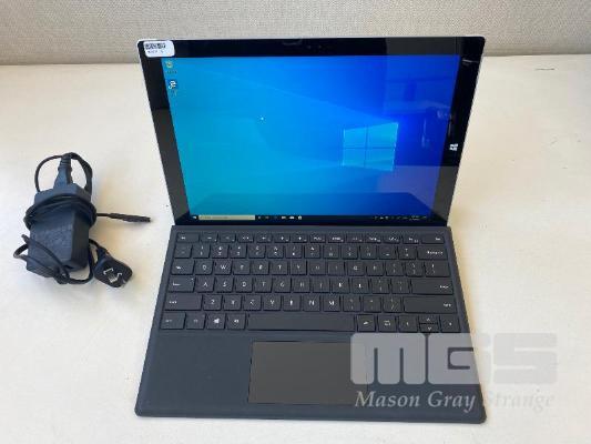 TABLET PC, MICROSOFT SURFACE PRO 3, MODEL 1631, CORE i5 4300U (4TH GEN) @ 1.9GHz, 4GB RAM, 128GB SSD, 12" TOUCHSCREEN, Wi-Fi, WINDOWS 10 PRO INSTALLED, KEYBOARD TYPE COVER & POWER SUPPLY (NOTE: BIOS PASSWORD PROTECTED) S/N:014355353253